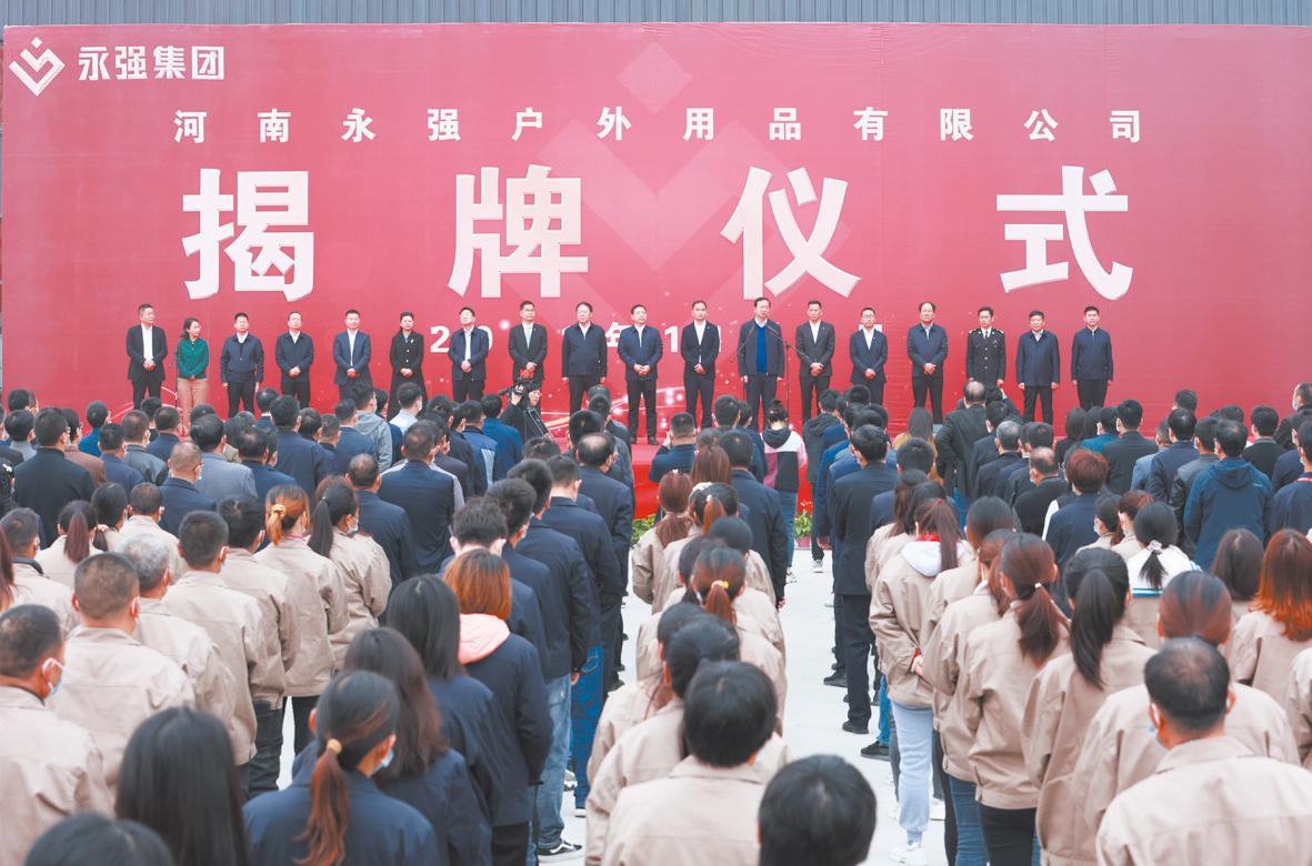本報訊(記者 汪蒙霞)11月2日上午,在一片歡騰喜慶的氛圍中,河南永強戶外用品有限公司舉行了隆重的開工投產儀式,現場盛大揭牌,標志著集團高質量發展之路又邁出了關鍵性步伐。